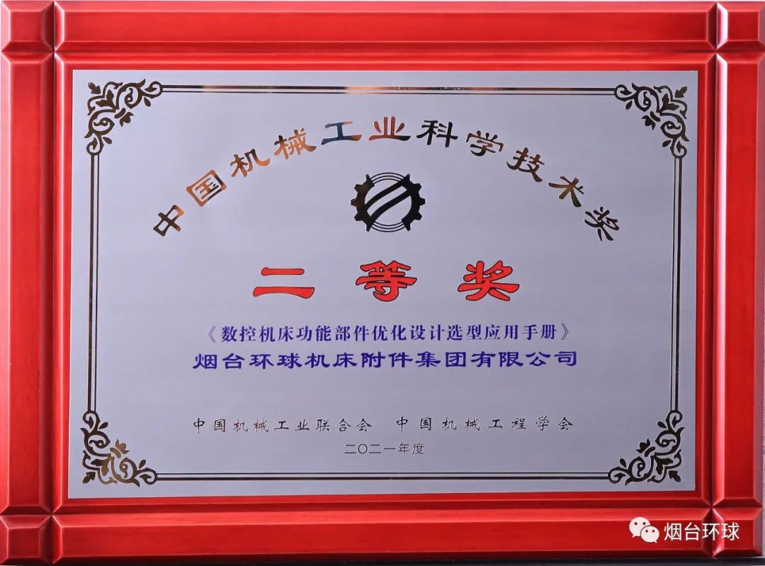 煙臺環球參與的“數控機床功能部件優化設計選型應用手冊”項目獲得中國機械工業科學技術獎科技進步二等獎。