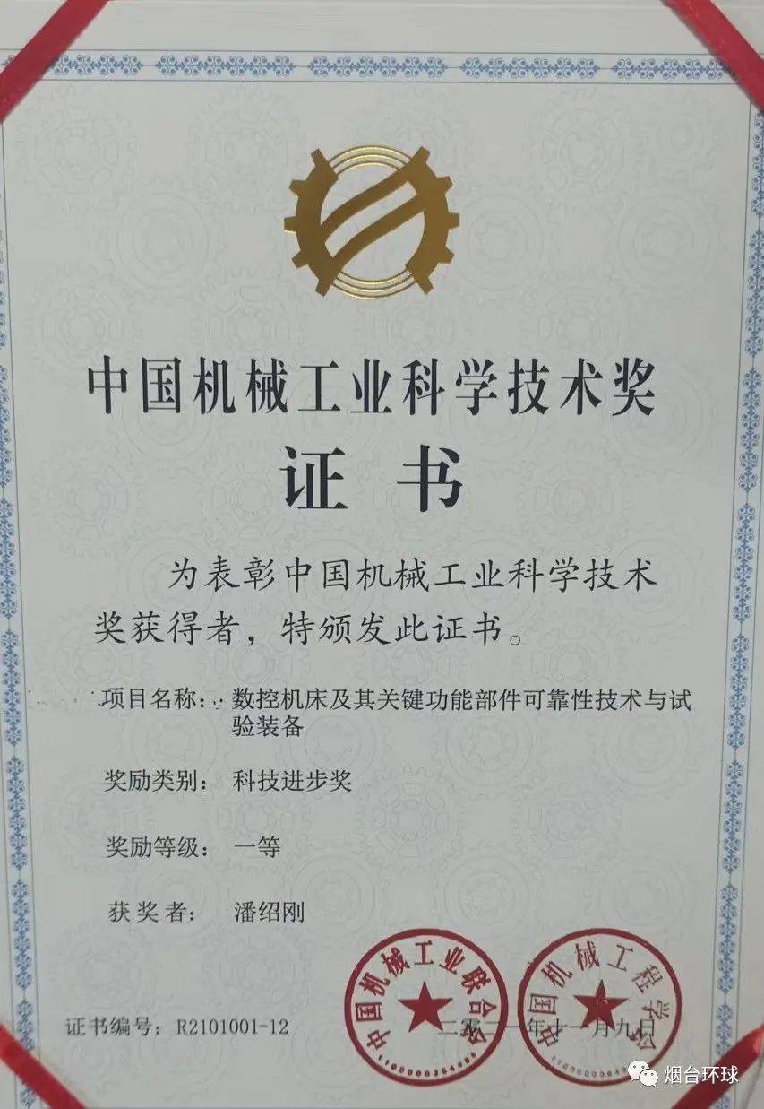 2021年末,中國機械工業聯合會發布2021年度科學技術進步獎項,煙臺環球參與的“數控機床及其關鍵功能部件可靠性技術與試驗裝備”項目獲得中國機械工業科學技術獎科技進步一等獎;